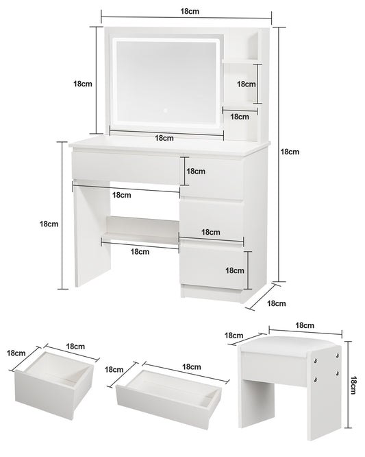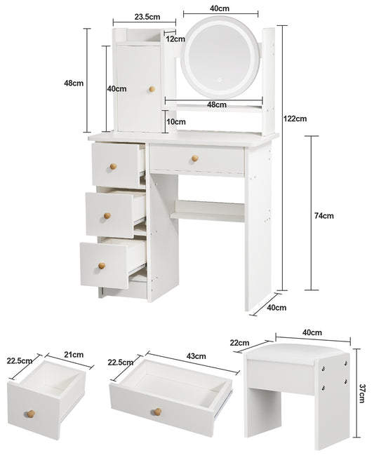 Vanity Table - Model 612A - White, 80x40cm, Stool Included