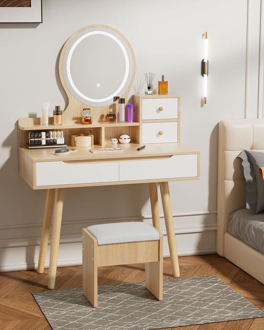 Vanity Table - Model D68 - Wood-colored, 80x40cm, Stool Included