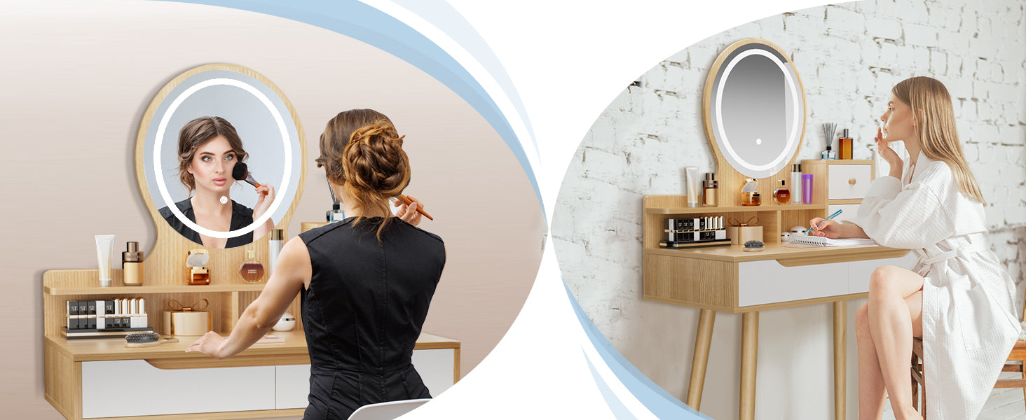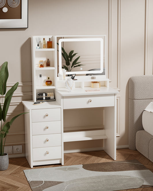 Vanity Table - Model D089 - White, 80x40cm, Extra Large Mirror, Stool Included