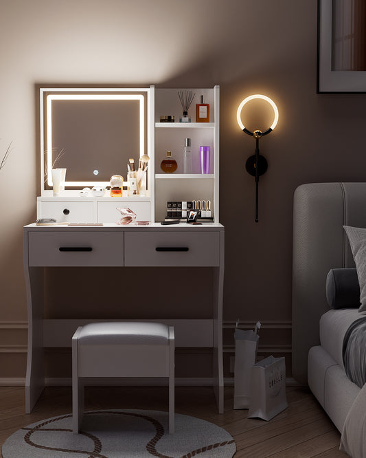 Vanity Table - Model 612 - White, 80x40cm, Stool Included